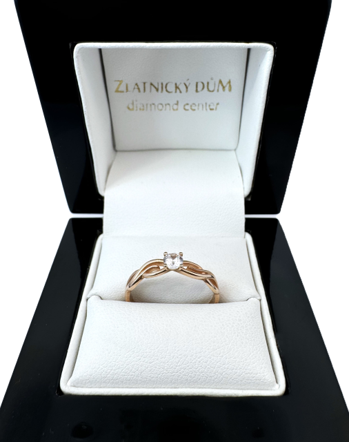 Objevte kouzlo a eleganci našeho zásnubního diamantového prstenu, který je vyroben s maximální precizností a láskou. Tento nádherný prsten se zakrouceným páskem, představuje dvě duše, které jsou navždy spojeny. Pyšní se třpytivým diamantem, jenž je pečlivě zasazen do jemného zlatého rámu, který zvýrazňuje jeho lesk a krásu. Přírodní diamant je vybrán podle nejpřísnějších standardů, aby zaručil kvalitu a jedinečnost, kterou si vaše zasnoubení zaslouží.