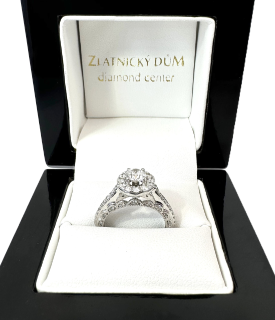 Okouzlující zásnubní prsten briliantového brusu, luxusního a zároveň elegantního vzhledu bude na Vaší ruce dokonale zářit.