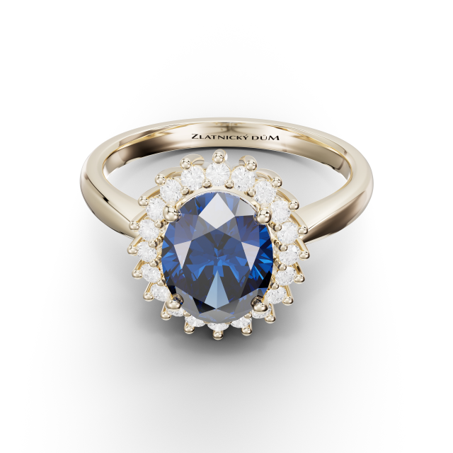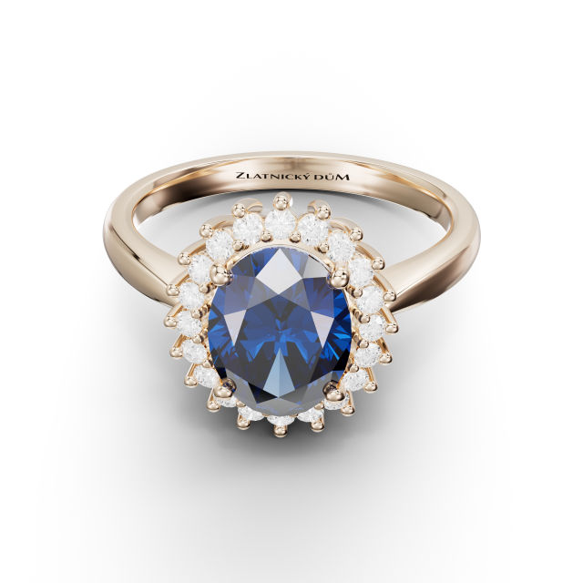 Pro extra okouzlení byl zvolen centrálním drahokamem safír 1.08 ct , který obklopuje 20 pečlivě vybraných přirodních diamantů. Spojení krásy a přírody v podobě perfektně vybroušených a do zlata zasazených drahokamů.