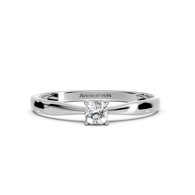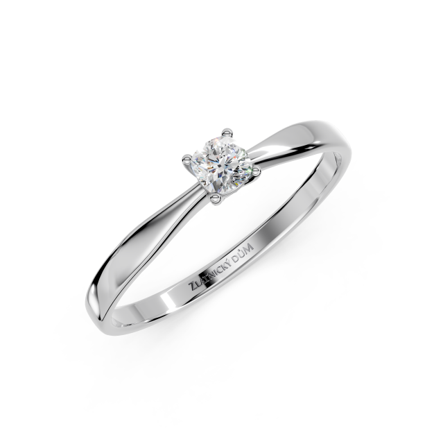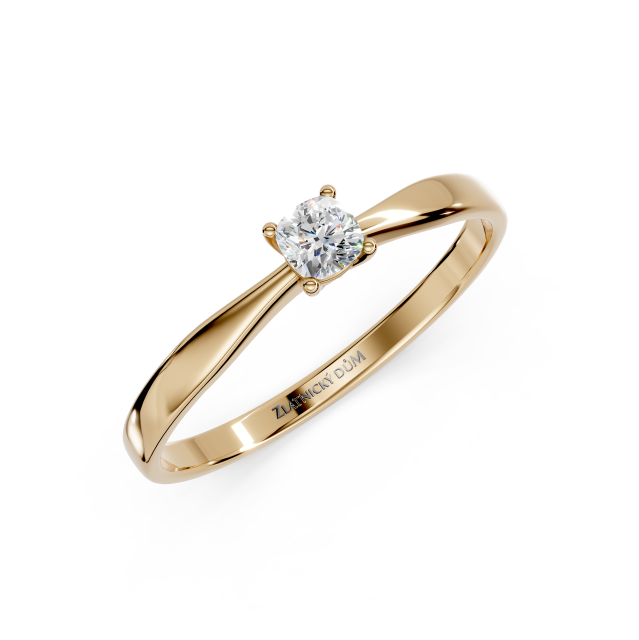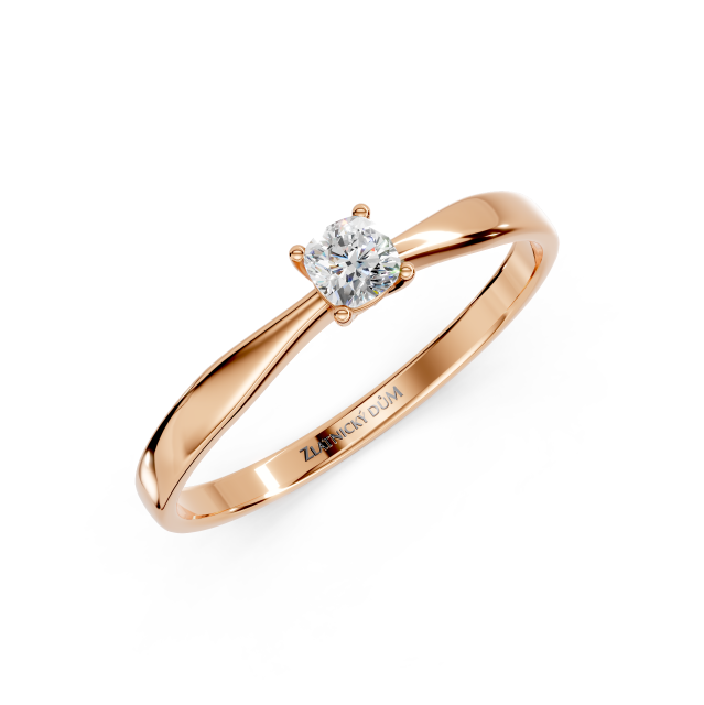 Velmi oblíbený klasický prsten s jedním centrálním briliantem zasazený do čtyř krapen. Jednoduchý design prstenu nechává vyniknout centrální diamant, který je hlavním prvkem celého šperku. Kulatý brus diamantu odráží světlo a dodává překrásný třpyt.