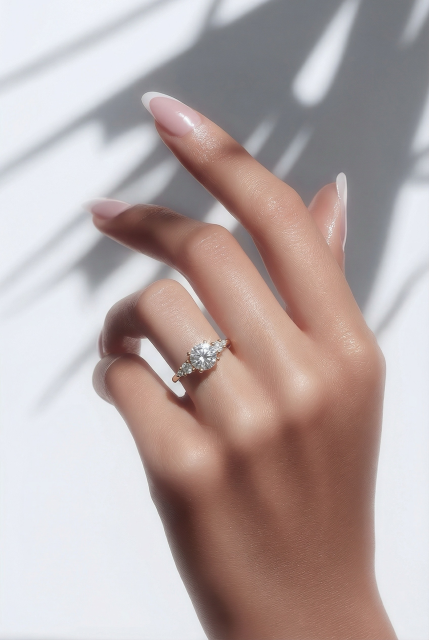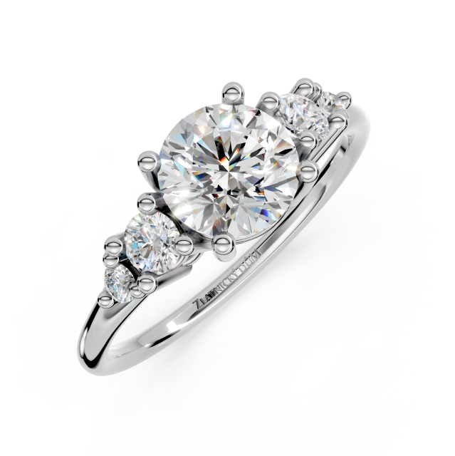 Zářivý centrální 0.50 ct diamant doplňují čtyři postranní diamanty. Každý diamant byl pečlivě vybroušen tak, aby zachytil světlo s výjimečnou brilancí, zatímco zpracování dodává šperku jemnost a noblesu.