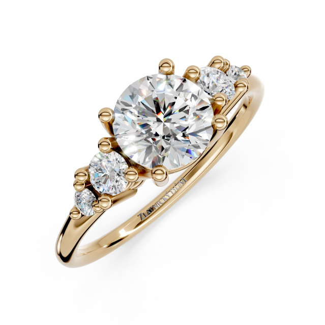 Okouzlující zásnubní prsten ze 14 kt zlata, který v sobě spojuje romantiku a dokonalé řemeslné zpracování.
