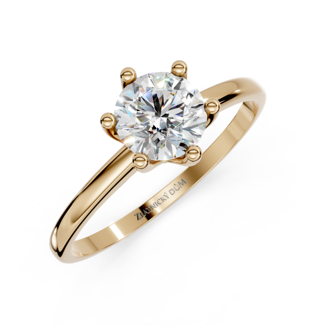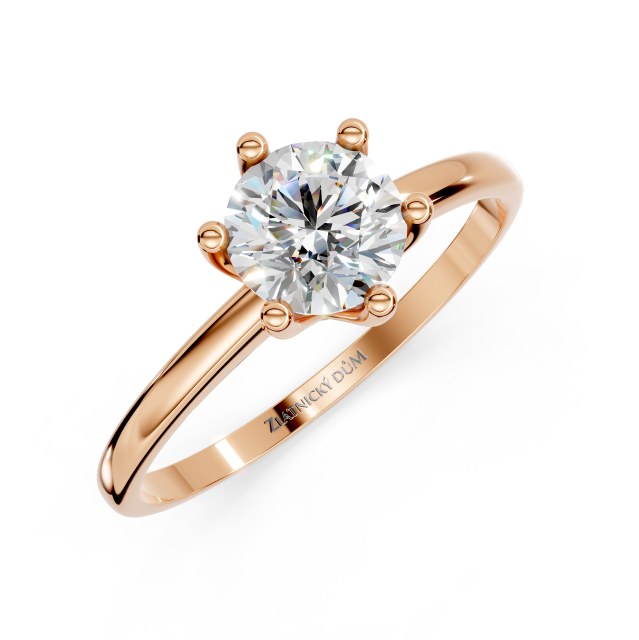 Centrální drahokam v klasickém šestikrapnovém uchycení krásně vynikne a zachycuje světlo z každého úhlu. Zářivý diamant odráží každý paprsek světla stejně, jako se odráží láska v očích milované osoby.