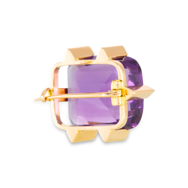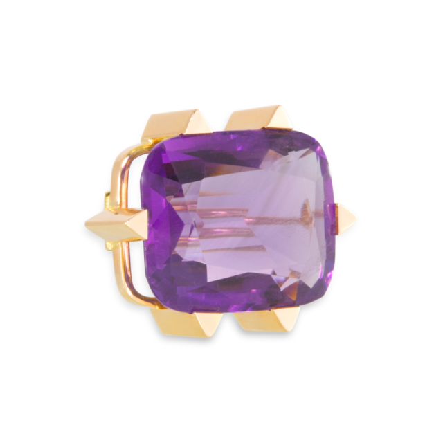 Ametyst je vybroušen polštářkovým fasetovým výbrusem. Výborná čistota, kvalitní brus, drobná fraktura na hraně rundisty, okem není téměř vidět.