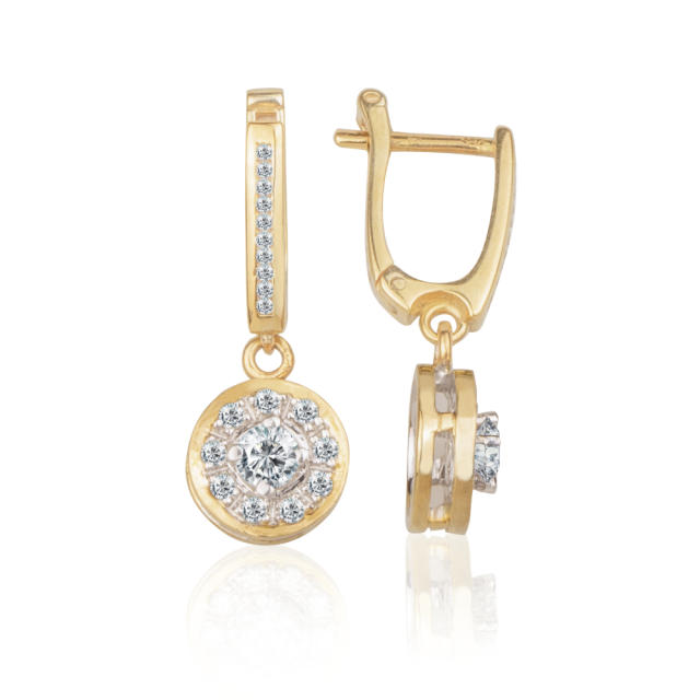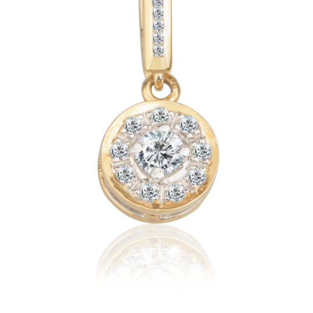 Náušnice jsou vyrobeny ze 14 karátového žlutého a bílého zlata. Šperk je osazen diamanty kvality 3 x Ex. Na bílém zlatě je galvanicky aplikována vrstva rhodia za účelem ochrany a dosažení vysokého kovového lesku.