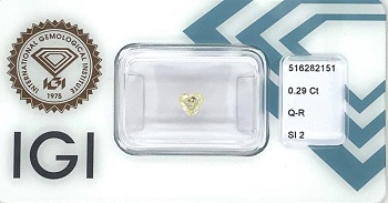 Hmotnost [ct]: 0.29 Barva: Q-R Čistota SI2 Brus heart Certifikát IGI Rozměry [mm] 4.51 x 4.87 x 2.04 Lesk Very good Symetrie Very good Fluorescence Very slight