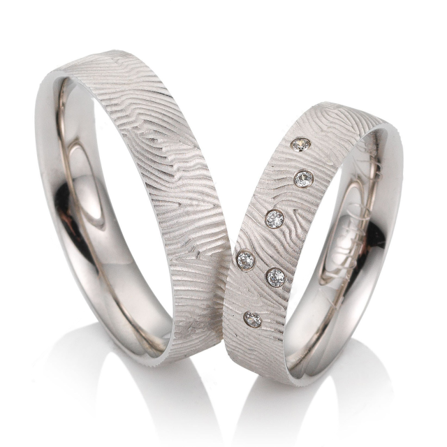 Kolekce zásnubního prstenu se snubním. Zásnubní prsten ze 14 kt bílého zlata doplněn diamantem 0.343 ct. Snubním prstenem s diamanty 0.16 ct. Barvy kovů je možné zvolit podle přání zákazníka (žlutá, bílá, růžová).