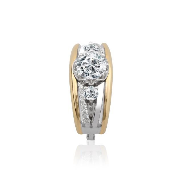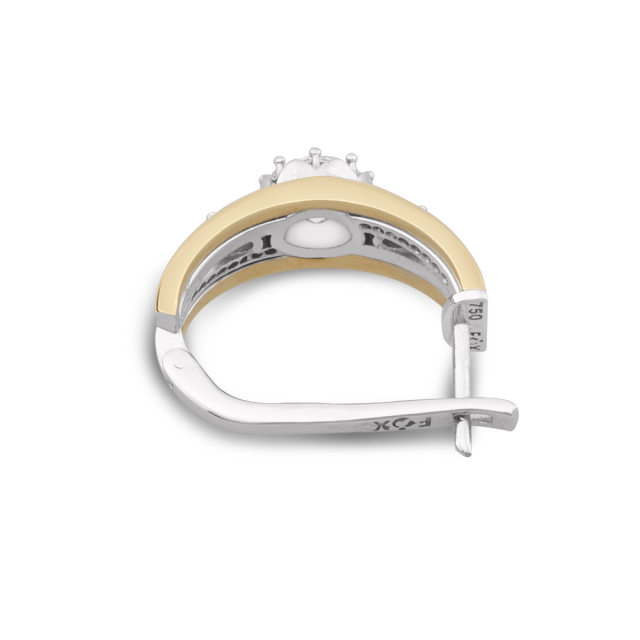 Náušnice jsou vyrobeny z 18 karátového bílého a žlutého zlata. Na šperku krásně vynikne 1ct diamant kvality 3 x Ex, který je zasazen na střed náušnice. Na bílém zlatě je galvanicky aplikována vrstva rhodia za účelem ochrany a dosažení vysokého kovového lesku.