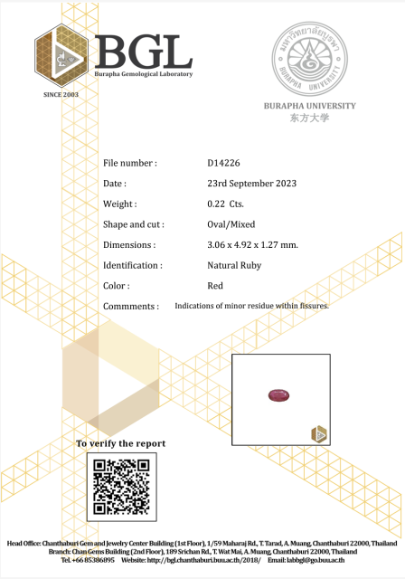 Přírodní rubín 0,22 ct s krásnou barvou a typickými růstovými vrostlicemi.