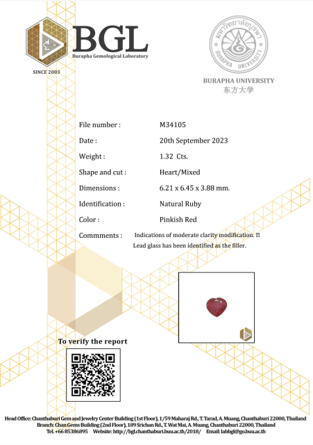 Krásný přírodní rubín 1,32 ct ve tvaru srdce.