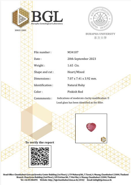 Přírodní rubín ve tvaru srdce o velikosti 1,65 ct.