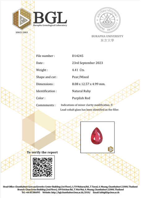 Překrásný přírodní 4, 41 ct rubín.