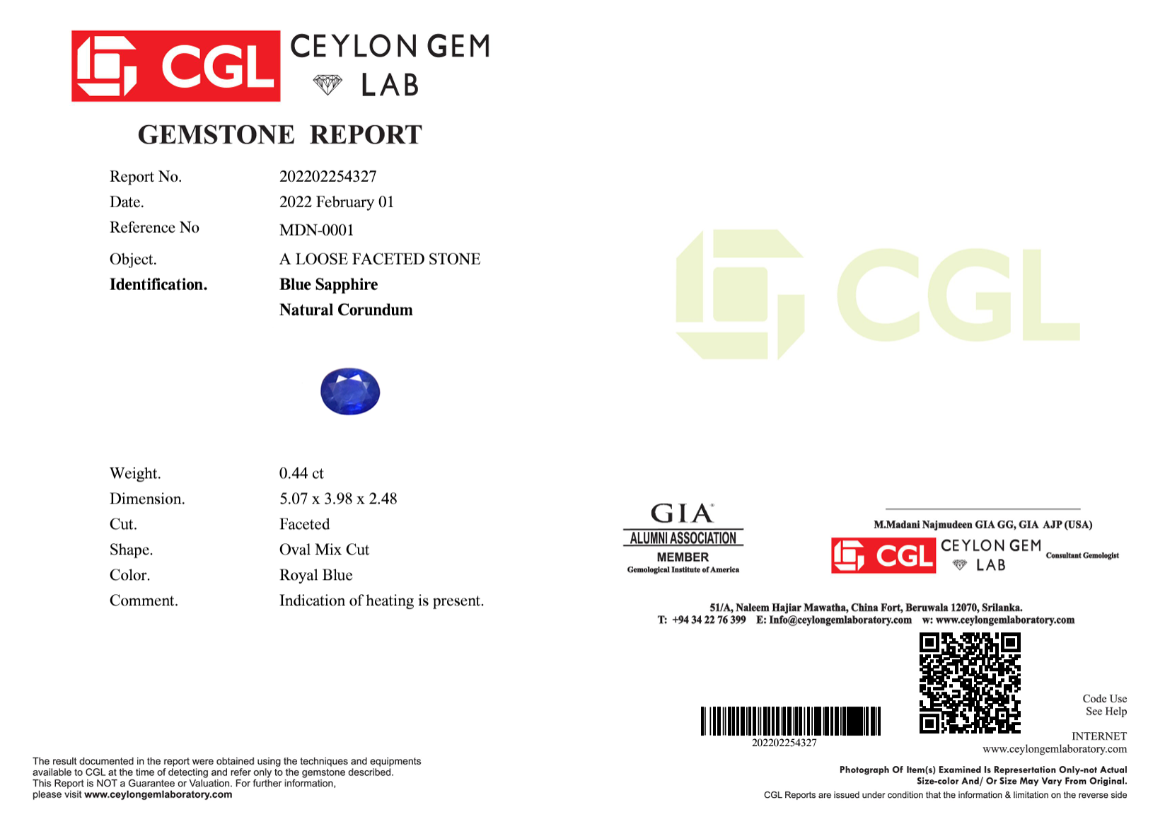 Certifikát CGL k drahokamu.