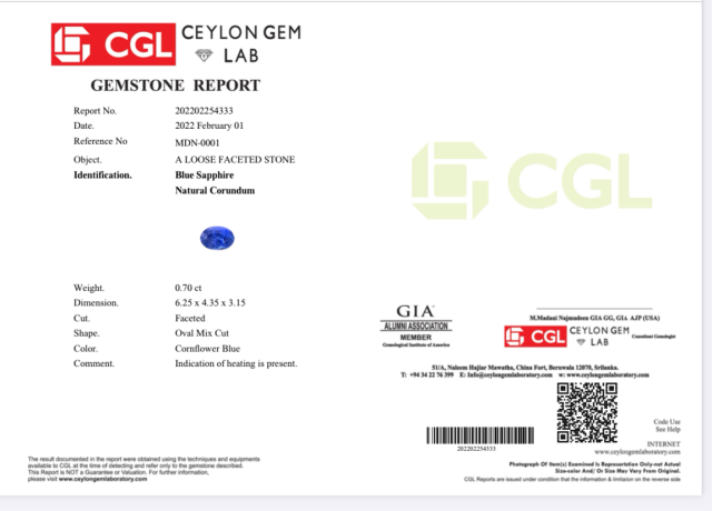 V safíru se nachází krásná pravidelná mikro vrostlička oxidu hlinitého viditelná pod lupou. Index lomu druhého nejtvrdšího drahokamu na světě je 1,762, který měříme Refraktometrem. Jedná se o 100% zkoušku lomu světla potvrzujicí přírodní safír odrůda korundu.