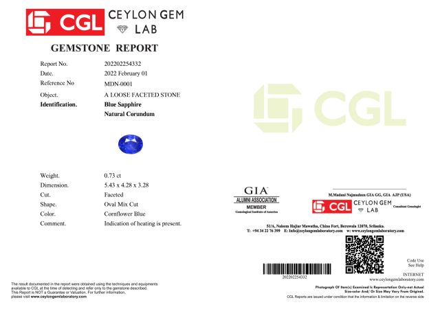Tento safír o velikosti 0,73 ct byl vytěžen v Cejlonu.