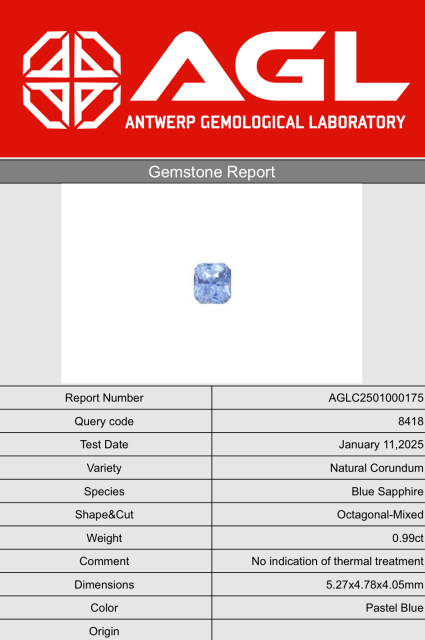Modrý přírodní safír 0,99 ct ve tvaru octagonal.