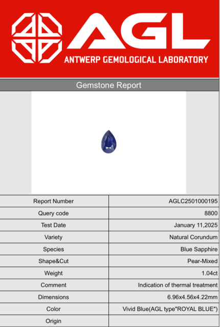 Osobní a jedinečný, tento modrý safír o velikosti 1,04 ct ve tvaru hrušky - Pear.
