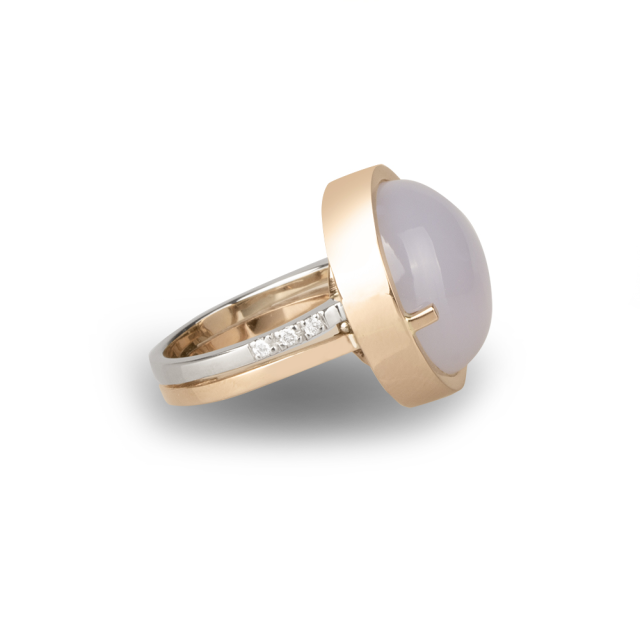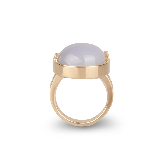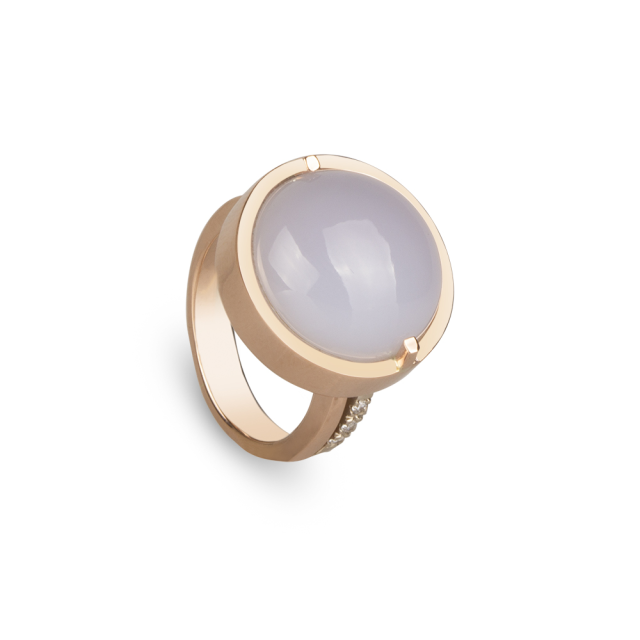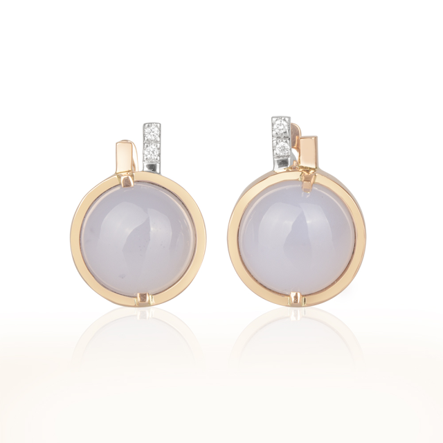 Krásný set náušnic, prstenu a přívěsu s chalcedonem a diamanty navržen ve Zlatnickém domě.
