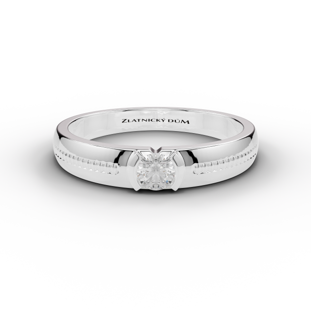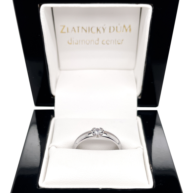 Pečlivě vybraný centrální přírodní diamant zafasovaný do obruby a po stranách s viditelným bočním brusem diamantu. K prstenu je vystaven certifikát pravosti přírodního kamene a kvality. Diamant má vlastní rodný list vypracovaný nejuznávanější gemologickou laboratoří HRD v Antwerpách. Kvalita diamantu VVS - jedná se o lepší kvalitu diamantů, které jsou čisté a více se třpytí.