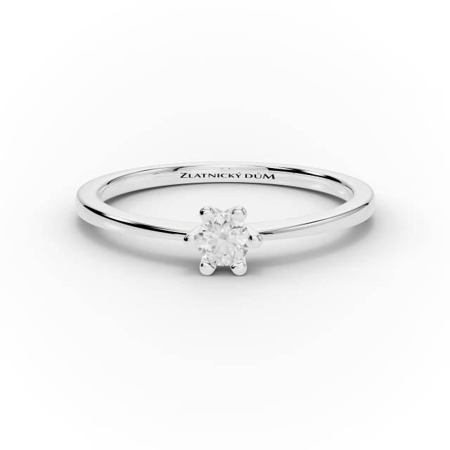 Prsten je zhotovený ze 14kt zlata, které bylo rhodiováno pro dosažení výrazného bílého lesku a ochranu samotného kovu. Kvalita prstenu je ověřena a registrována puncovním úřadem v Plzni.