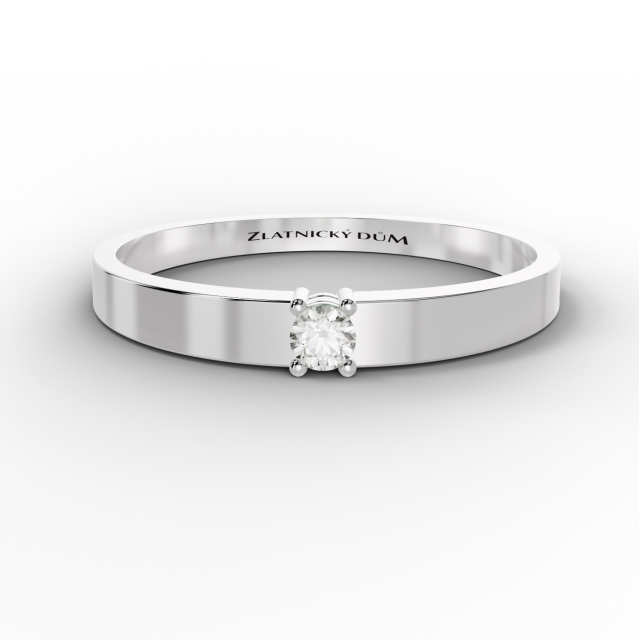 Jednoduchý zásnubní prsten vyroben ze žlutého, bílého nebo růžového 14kt zlata, doplněn 1 x 2.5 mm briliantem (0.06ct)